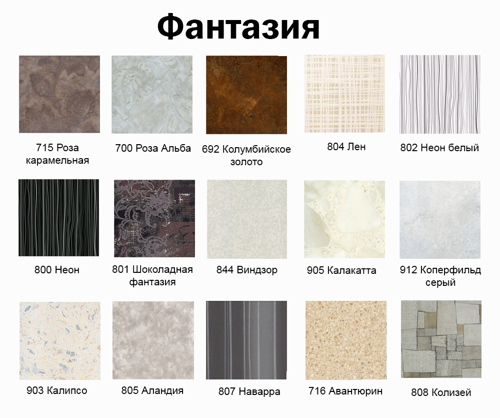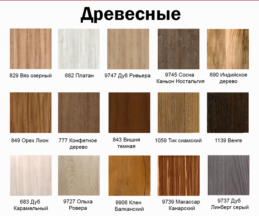 Отделка поверхности существует в нескольких видах: глянцевая, матовая, структурная. Материал может быть исполнен в различном цвете, так как в наличии более 60 декоров – однотонные, металлизированные, древесные, каменные и фантазийные.